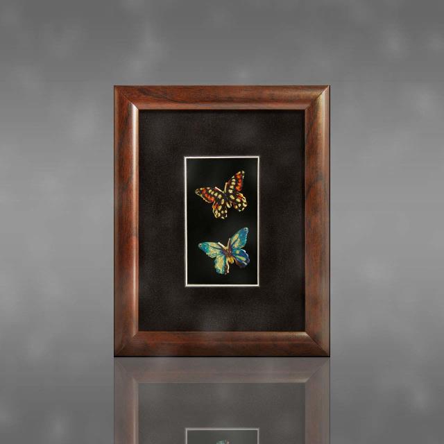 شمش طلای پروانه رنگی داخل قاب چوبی